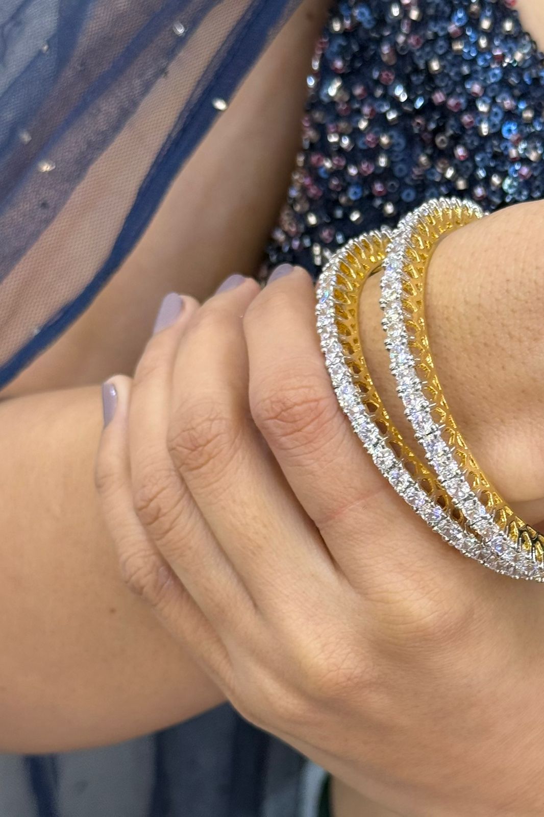 2 Carat Pointer Diamond Premium Silver Polish Bangles Set of 2