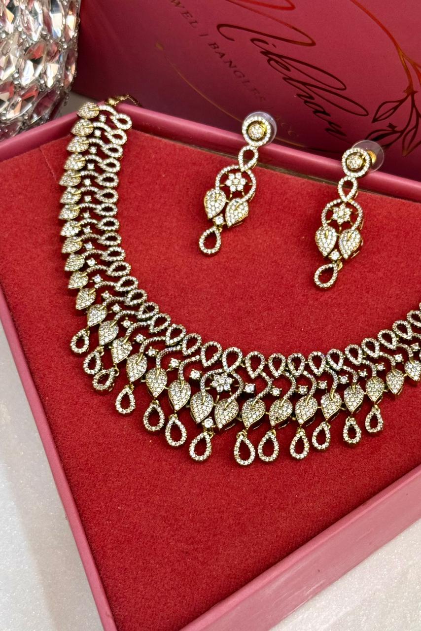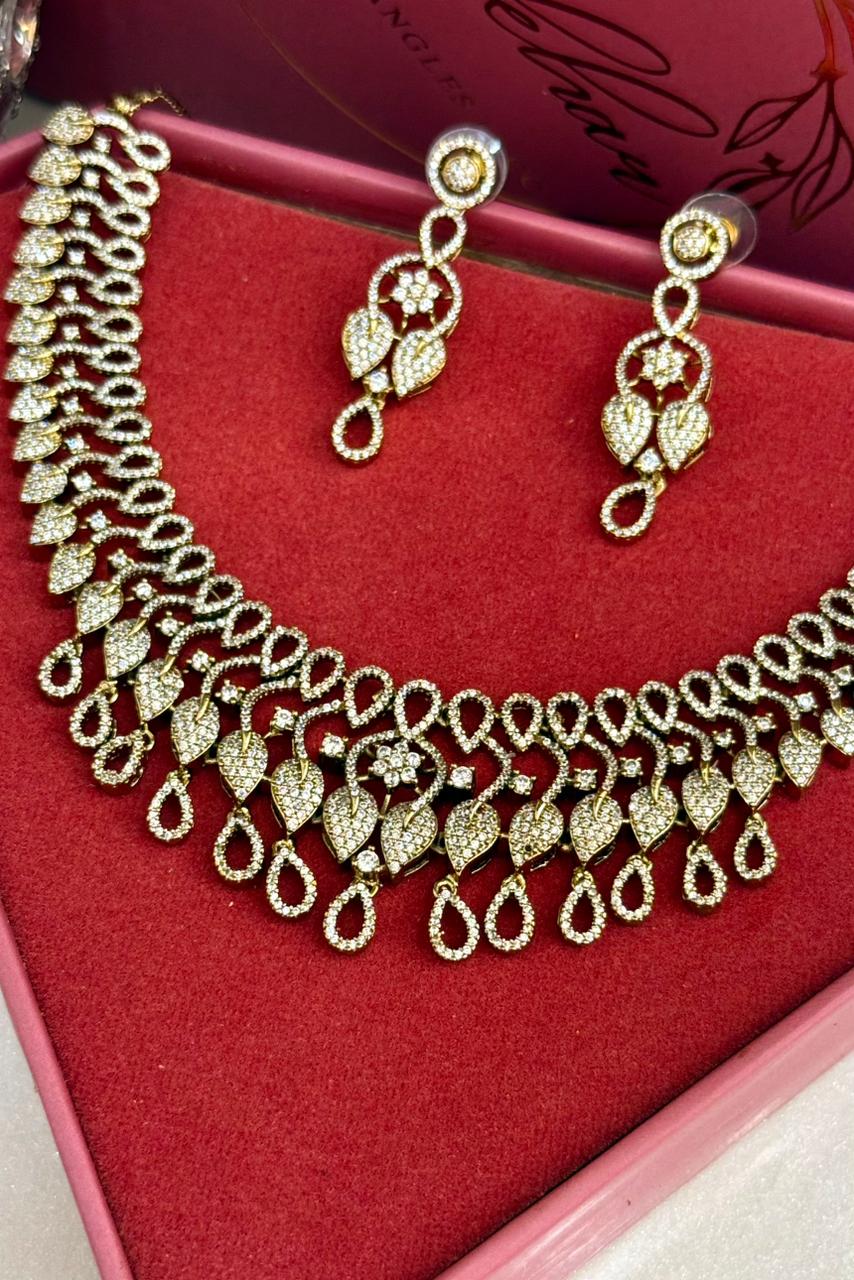 Amaira Antique Gold Polish American Diamond Necklace Set