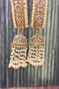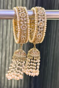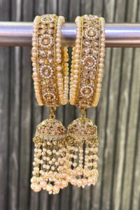 Be the first to review “Antique Reverse Hanging AD Glided Pearl Gold Jhumki Bangles Set of 2”