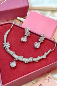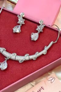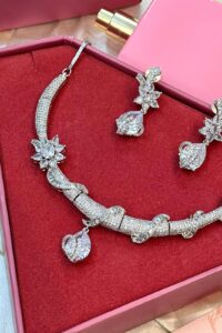 Be the first to review “Hasli Lustre Legacy Silver Stone American Diamond Necklace Set”
