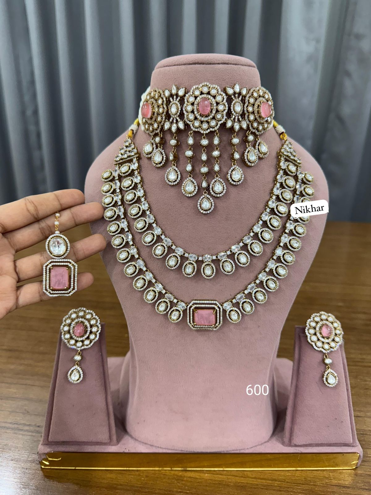 Be the first to review “Bridal Pink Moissanite Fine Quality Necklace Set with Maang Teeka and Earrings”