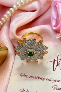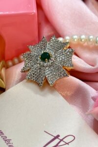 Be the first to review “Emerald American Diamond Studded Silver Ring”