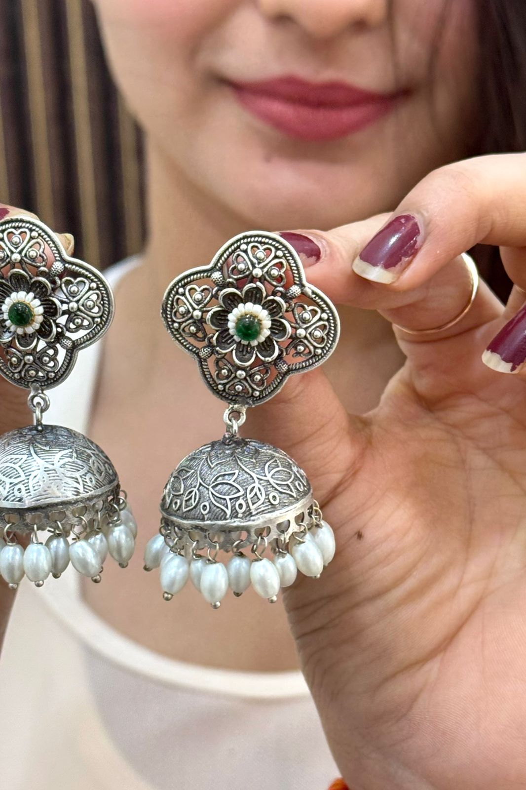 ChaandMahal Emerald German Silver Earrings