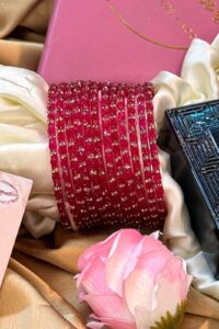 Be the first to review “Cherry Pink Diamond Crystal Mirror Pure Glass Bangles Set of 12”