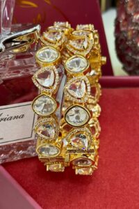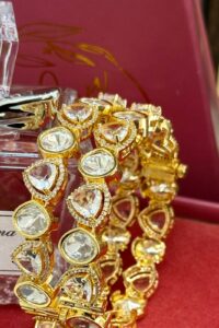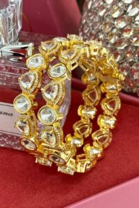 Be the first to review “Crystal Moissanite Sleek Exclusive Silver 925 Gold Exclusive Bangles Set of 2 (Openable)”