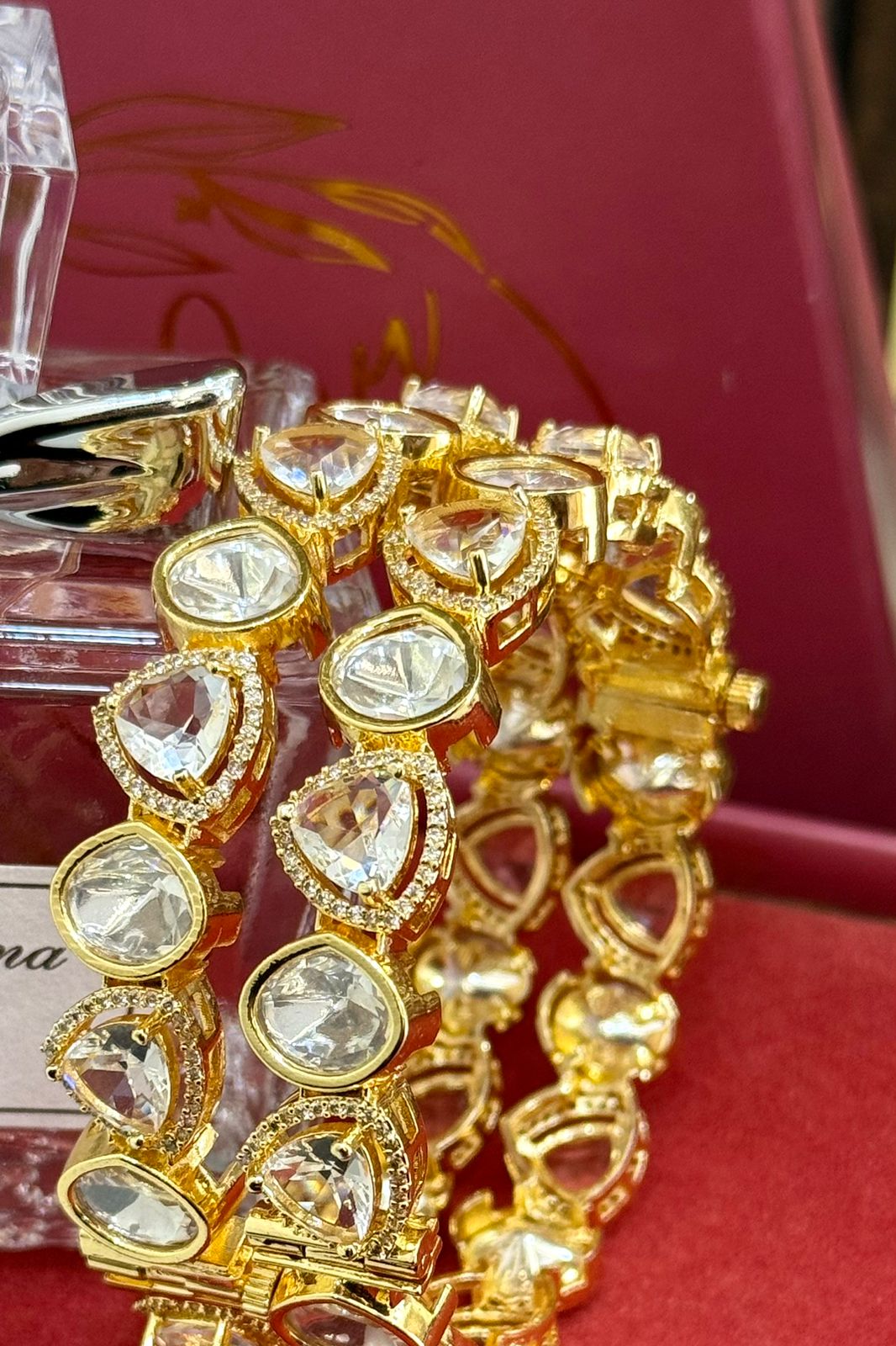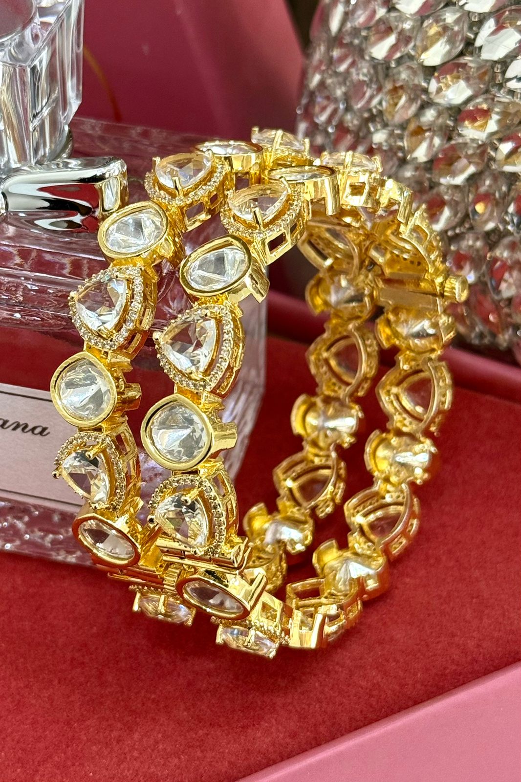 Crystal Moissanite Sleek Exclusive Silver 925 Gold Exclusive Bangles Set of 2 (Openable)