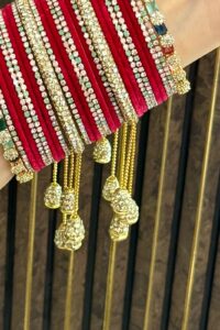 Discover our premium  Bangles, crafted with high-quality gold plating that does not fade easily and offers a lasting shine. Designed with the finest craftsmanship, each piece carries a lifetime of 3–5 years of brilliance. At Nikhar, we bring to you the legacy of 40 years of trusted craftsmanship, with every piece handcrafted in our Delhi store to reflect elegance and tradition. After this period, you can simply contact us for re-polishing services to keep your bangles looking as good as new.