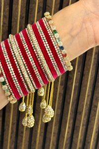 In Indian tradition, glass bangles are considered highly auspicious, symbolizing prosperity, good fortune, and the divine blessings of Goddess Lakshmi. Wearing them daily is believed to attract positivity, enhance feminine grace, and invite abundance into life. On weddings, festivals, and special occasions, they hold even deeper significance—representing joy, harmony, and the eternal bond of tradition.