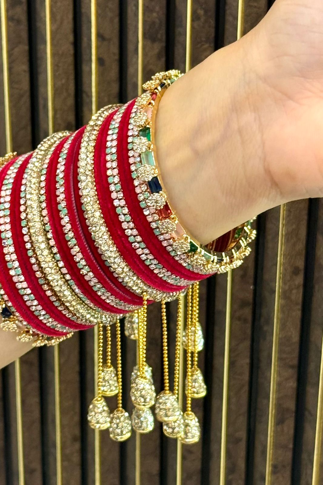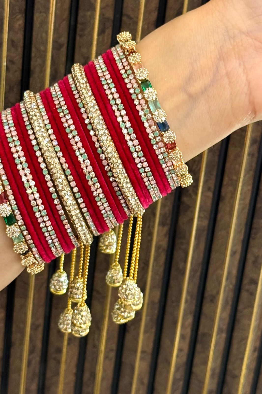 Be the first to review “Diamond Princess Cherry Pink Luxe American Diamond Bangle Set For 2 Hands”