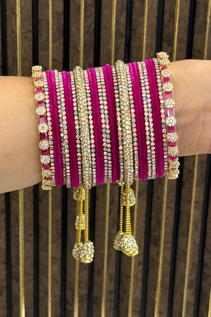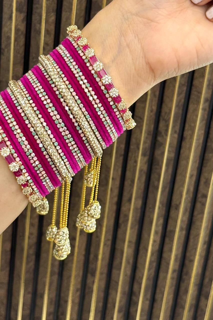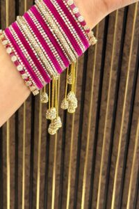 Note:- You will get Two Set. One for Each hand.Discover our premium Bangles, crafted with high-quality gold plating that does not fade easily and offers a lasting shine. Designed with the finest craftsmanship, each piece carries a lifetime of 3–5 years of brilliance. At Nikhar, we bring to you the legacy of 40 years of trusted craftsmanship, with every piece handcrafted in our Delhi store to reflect elegance and tradition. After this period, you can simply contact us for re-polishing services to keep your bangles looking as good as new.