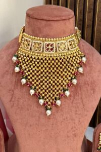 Nikhar Bangles, with a rich legacy of 36 years, presents exquisite bridal jewelry crafted from the finest Kundan Polki. Each piece is meticulously handcrafted to perfection, ensuring that every bride shines on her special day. Our designs seamlessly blend timeless tradition with contemporary trends, creating jewelry that is both elegant and modern. Nikhar Bangles stands as a symbol of heritage, luxury, and impeccable craftsmanship, making every bride’s dream come true.