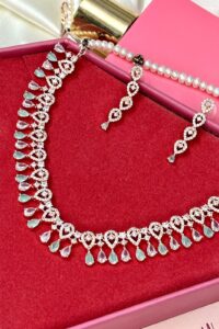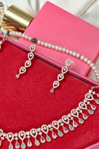 Be the first to review “Elysian Mint Gems Rose Gold American Diamond Necklace Set”
