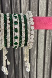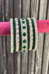 Emerald Shimmer Glance American Diamond Bangle Set for 2 Hands