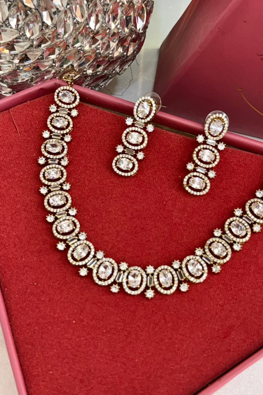 Evaline Antique Polish American Diamond Necklace Set