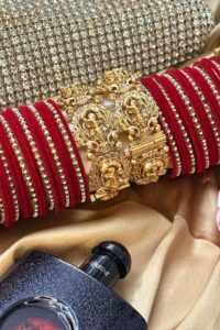 Note:- You will get Two Set. One for Each hand.Discover our premium Gold Polish Bangles, crafted with high-quality gold plating that does not fade easily and offers a lasting shine. Designed with the finest craftsmanship, each piece carries a lifetime of 3–5 years of brilliance. At Nikhar, we bring to you the legacy of 40 years of trusted craftsmanship, with every piece handcrafted in our Delhi store to reflect elegance and tradition. After this period, you can simply contact us for re-polishing services to keep your bangles looking as good as new.