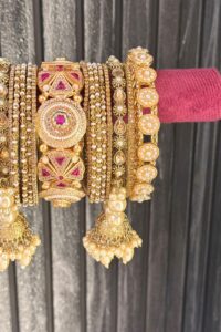 Note:- You will get Two Set. One for Each hand. Complete your ensemble with our stunning Matching Bangle Set, designed to effortlessly elevate your style. Impeccably crafted with meticulous attention to detail, these bangles exude quality and showcase exquisite craftsmanship. Adorned with intricate embellishments and shimmering stones, they are ready to be styled with a matching dress, adding a touch of sophistication and glamour to any occasion. The perfect blend of elegance and versatility, our Matching Bangle Set ensures you make a statement with every wear. Embrace the impeccable quality and craftsmanship, and embrace the beauty of these bangles as they accentuate your unique sense of style