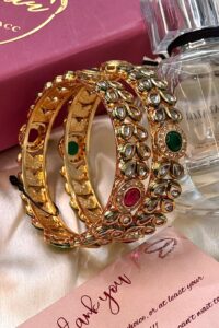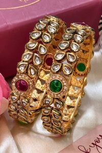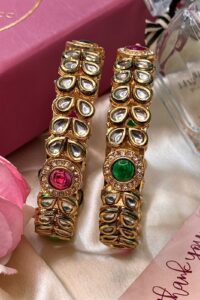 Be the first to review “Grandeur AC Kundan Ruby Emerald Premium Bangles Set of 2”