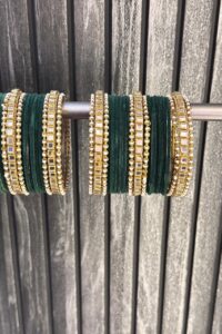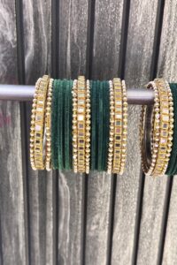Green Emerald Kundan Pearl Bangle Set For 2 Hands