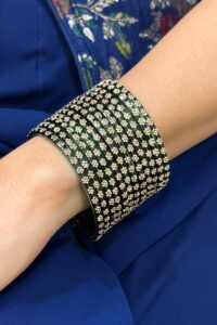 By choosing Nikhar, you don’t just embrace exquisite craftsmanship; you also support skilled artisans and empower women in the creative industry. Step into a world of grace, prosperity, and timeless beauty with our auspicious AD glass bangles.