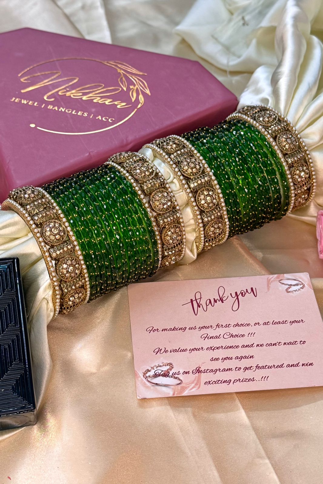 At Nikhar, our glass bangles are crafted using tough pure glass technology, making them strong, durable, and resistant to easy breakage. Each bangle is quality-tested and carefully checked before dispatch, ensuring you receive nothing short of perfection.