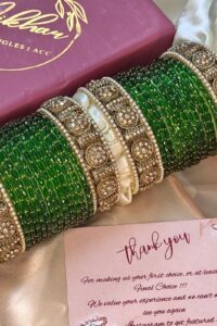 Note:- You will get Two Set. One for Each hand.Discover our premium Bangles, crafted with high-quality gold plating that does not fade easily and offers a lasting shine. Designed with the finest craftsmanship, each piece carries a lifetime of 3–5 years of brilliance. At Nikhar, we bring to you the legacy of 40 years of trusted craftsmanship, with every piece handcrafted in our Delhi store to reflect elegance and tradition. After this period, you can simply contact us for re-polishing services to keep your bangles looking as good as new.