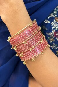 Experience the highest quality handcrafted gold polish bangles — a perfect blend of tradition, elegance, and emotion. Designed for your most special occasions, each set holds the sentiments and cultural beauty cherished by generations, lovingly crafted by our all-women team of skilled artisans. With clean craftsmanship and flawless attention to detail, we honour the emotional connection that comes with ritual and festive adornments.