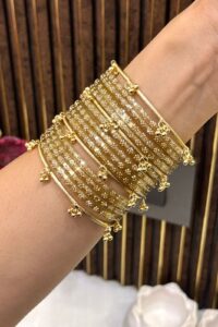Experience the highest quality handcrafted gold polish bangles — a perfect blend of tradition, elegance, and emotion. Designed for your most special occasions, each set holds the sentiments and cultural beauty cherished by generations, lovingly crafted by our all-women team of skilled artisans. With clean craftsmanship and flawless attention to detail, we honour the emotional connection that comes with ritual and festive adornments.