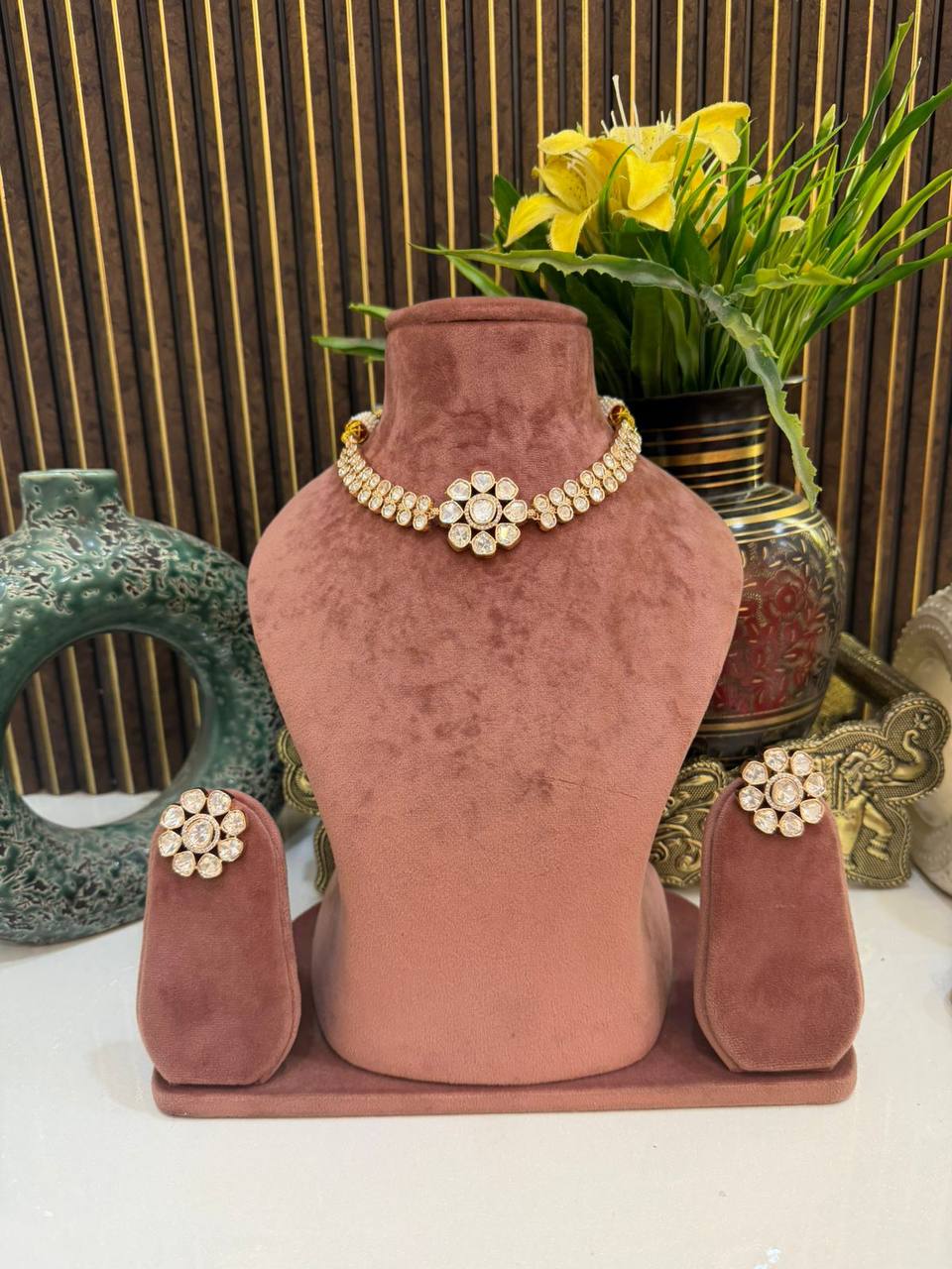 Care : To preserve your piece of art, refrain from exposing it to water or organic chemicals like perfume. Store in an airtight box and wipe with a soft cotton cloth after each use.
