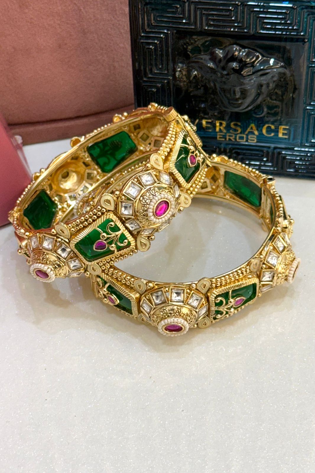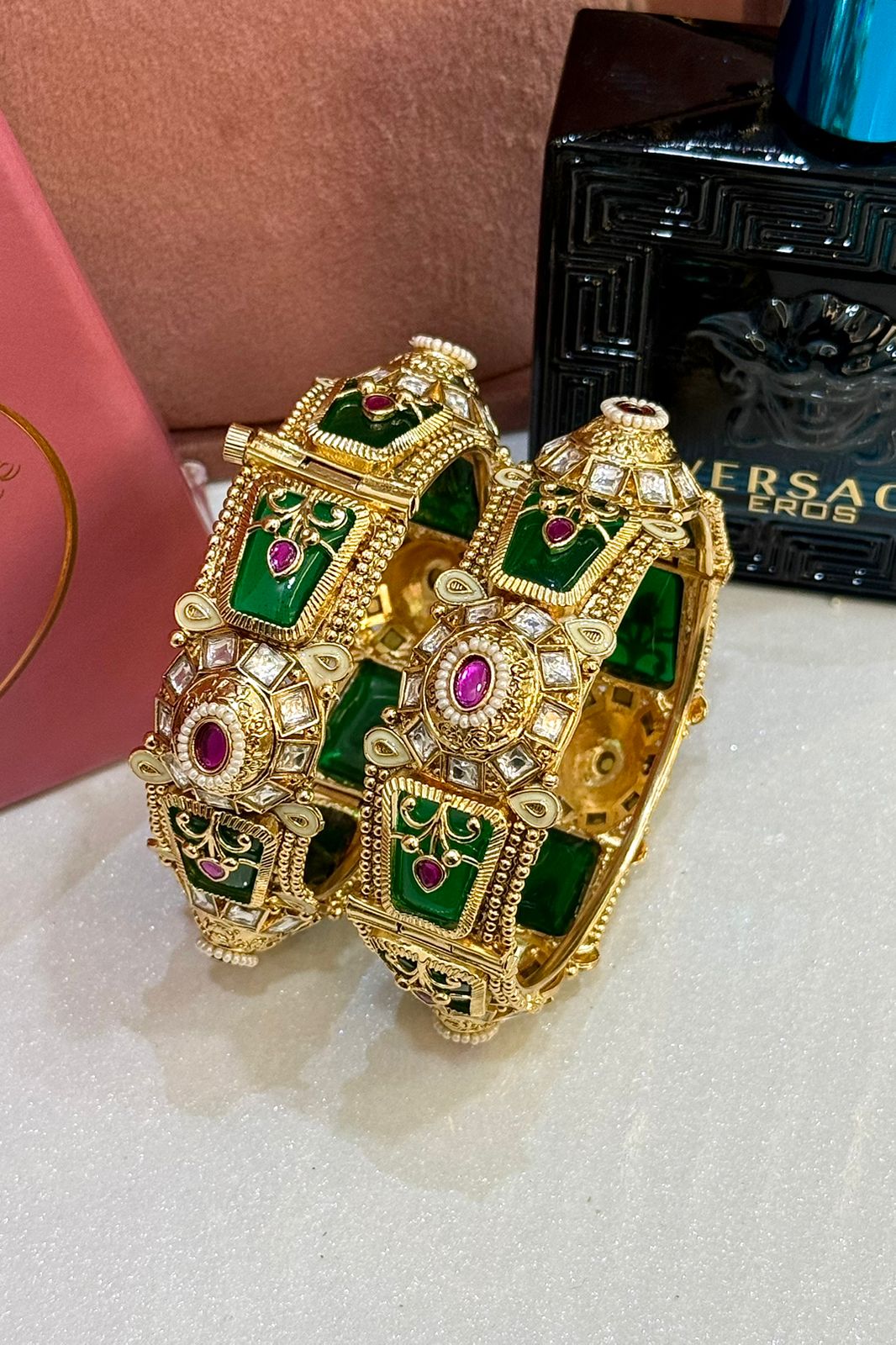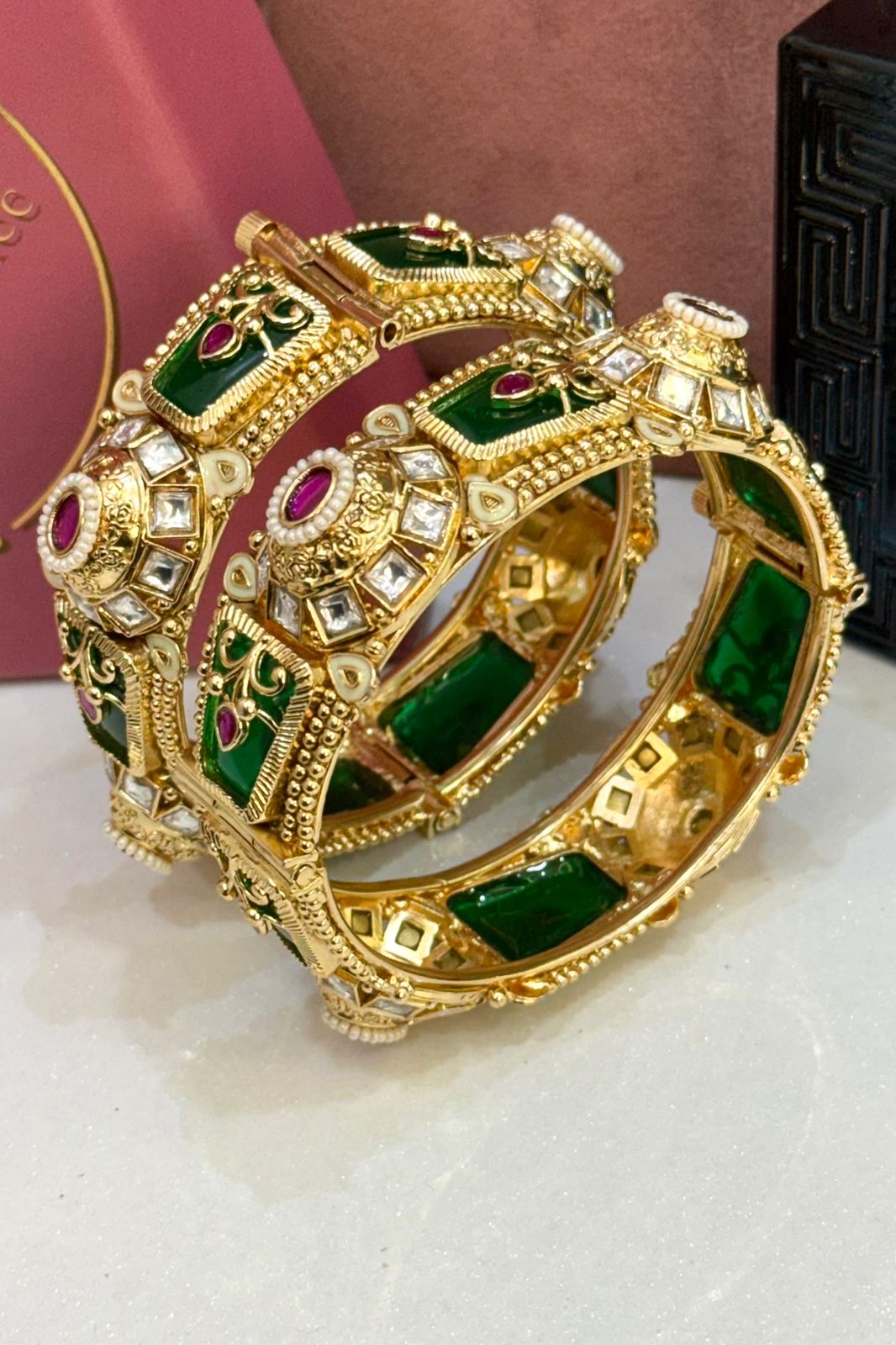 Be the first to review “Heritage Trending Emeralds Premium Gold Polish Bangles Set of 2(Openable)”