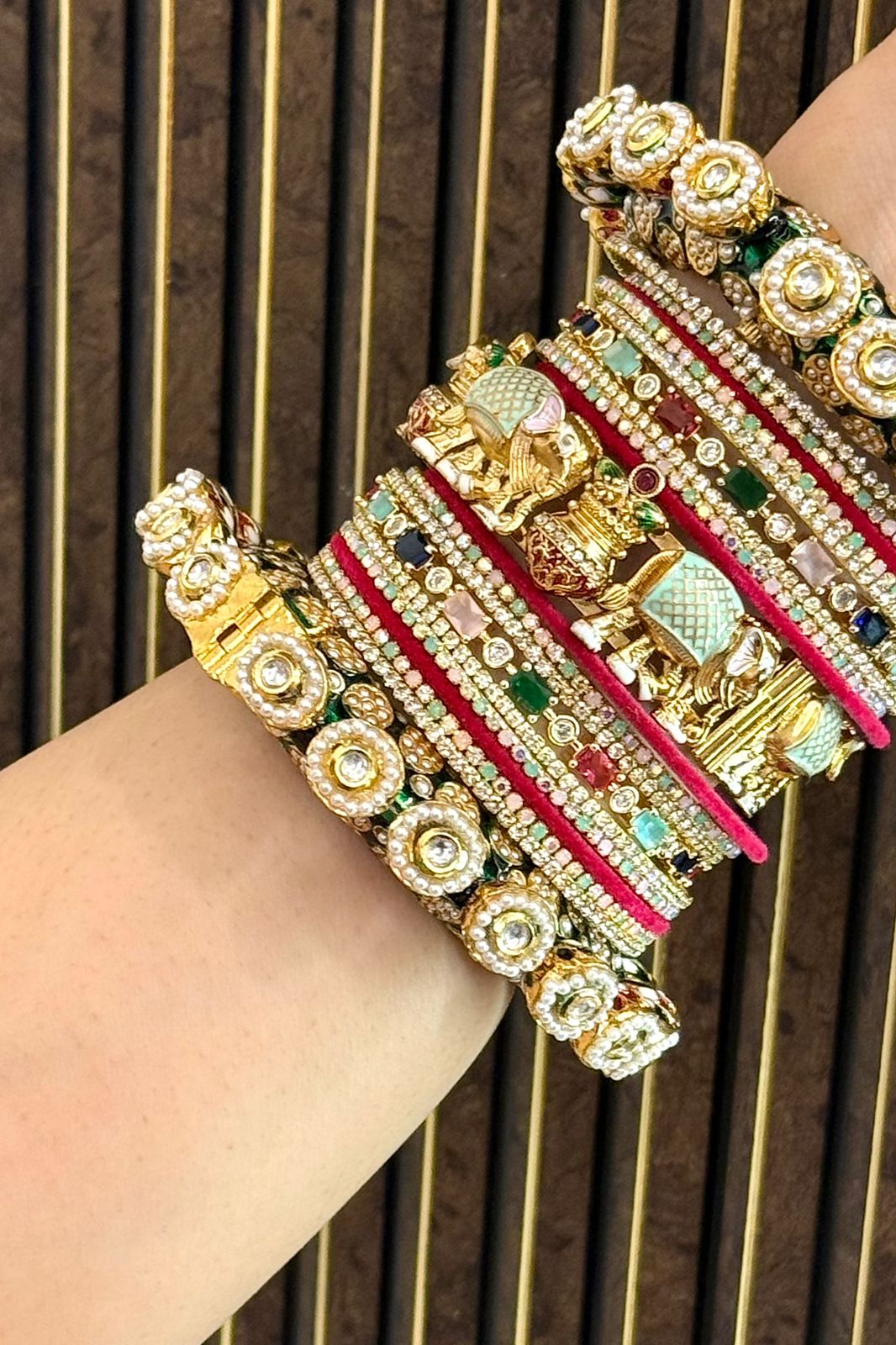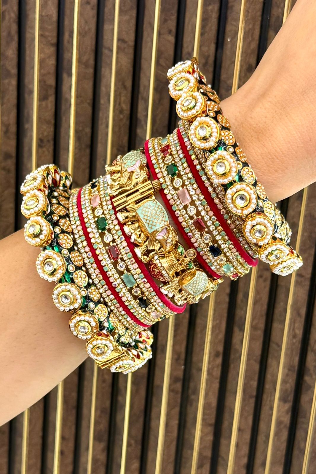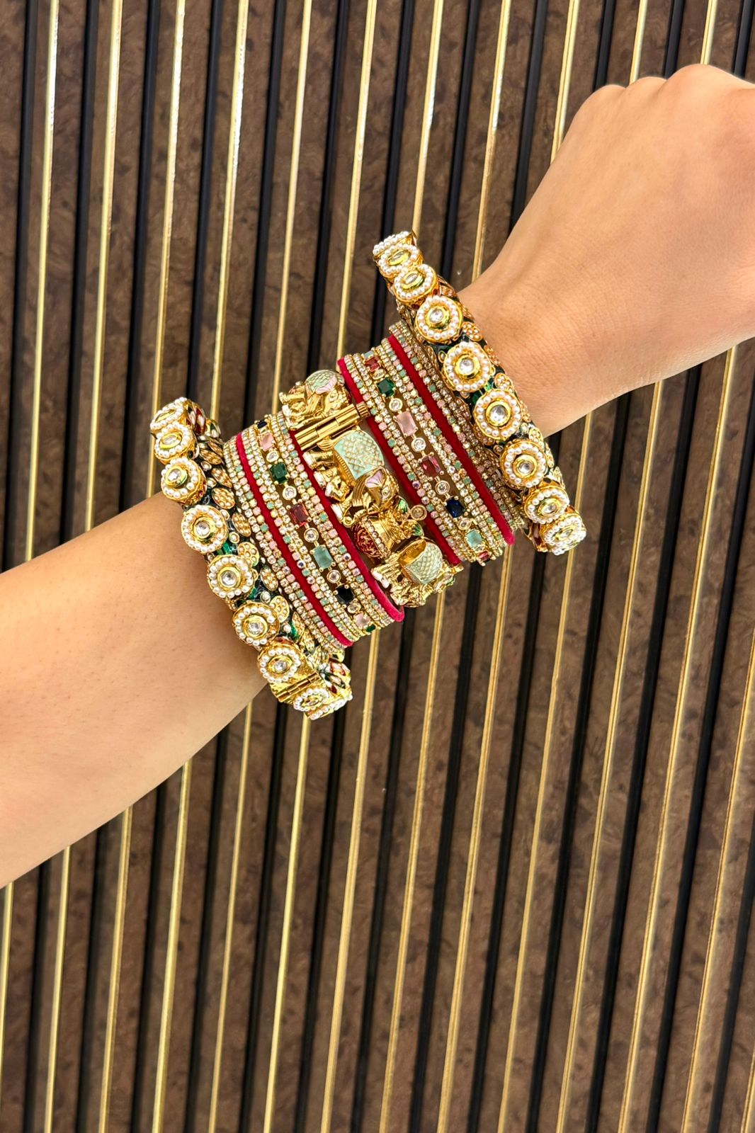 Instagram’s Most Viral Premium Rajwaada American Diamond Bangle Set For 2 Hands(Red)