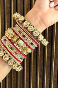 Discover our premium  Bangles, crafted with high-quality gold plating that does not fade easily and offers a lasting shine. Designed with the finest craftsmanship, each piece carries a lifetime of 3–5 years of brilliance. At Nikhar, we bring to you the legacy of 40 years of trusted craftsmanship, with every piece handcrafted in our Delhi store to reflect elegance and tradition. After this period, you can simply contact us for re-polishing services to keep your bangles looking as good as new.