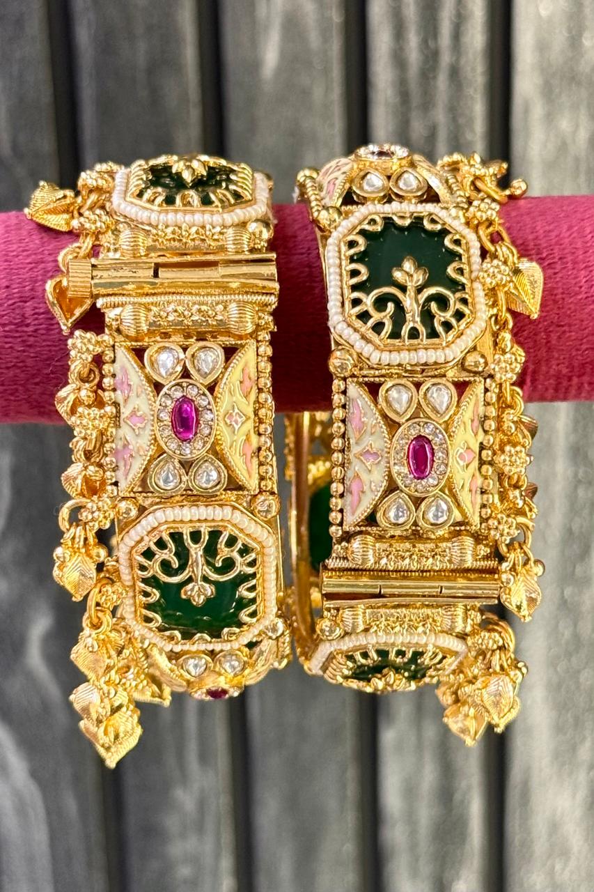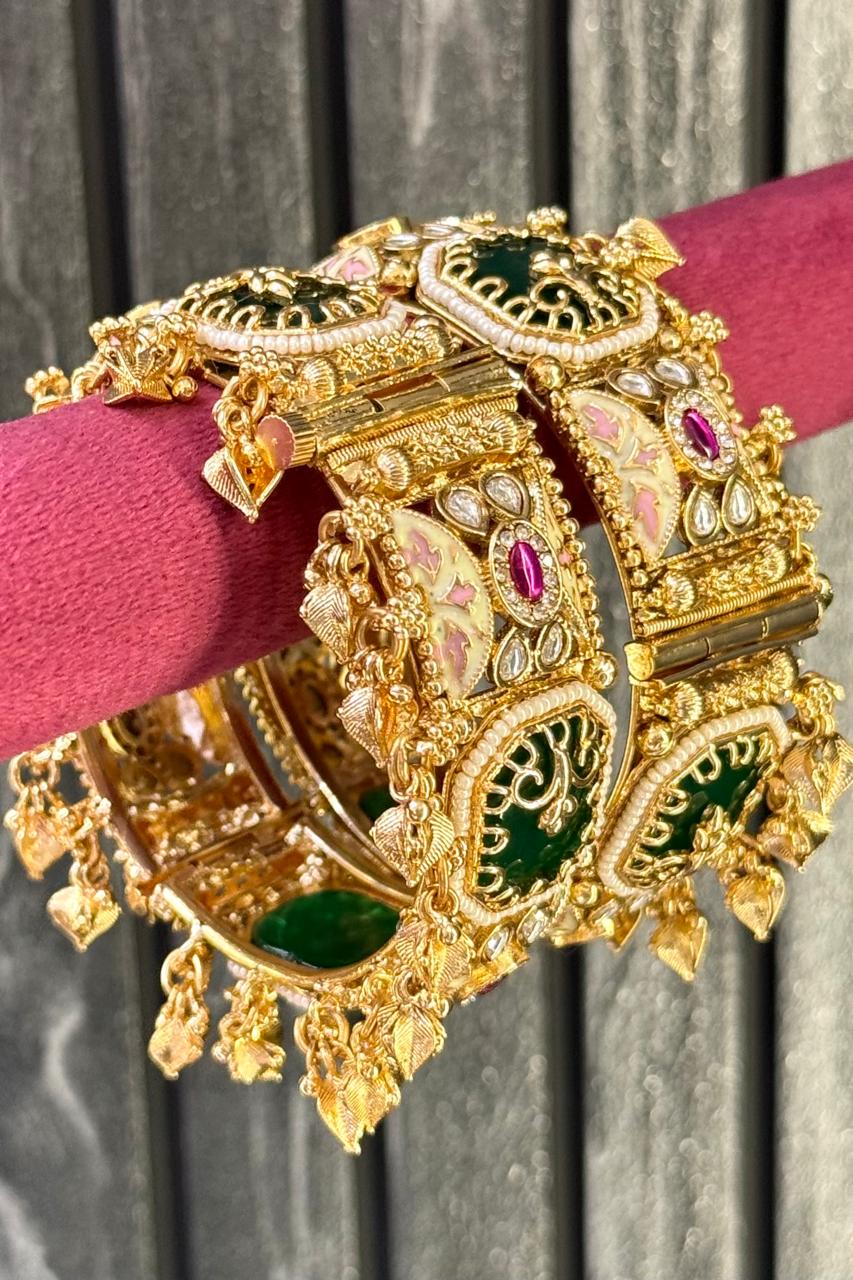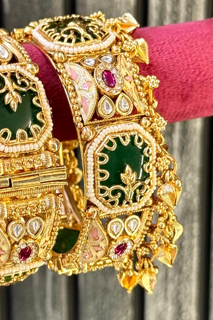 Experience the highest quality handcrafted gold polish bangles — a perfect blend of tradition, elegance, and emotion. Designed for your most special occasions, each set holds the sentiments and cultural beauty cherished by generations, lovingly crafted by our all-women team of skilled artisans. With clean craftsmanship and flawless attention to detail, we honour the emotional connection that comes with ritual and festive adornments.