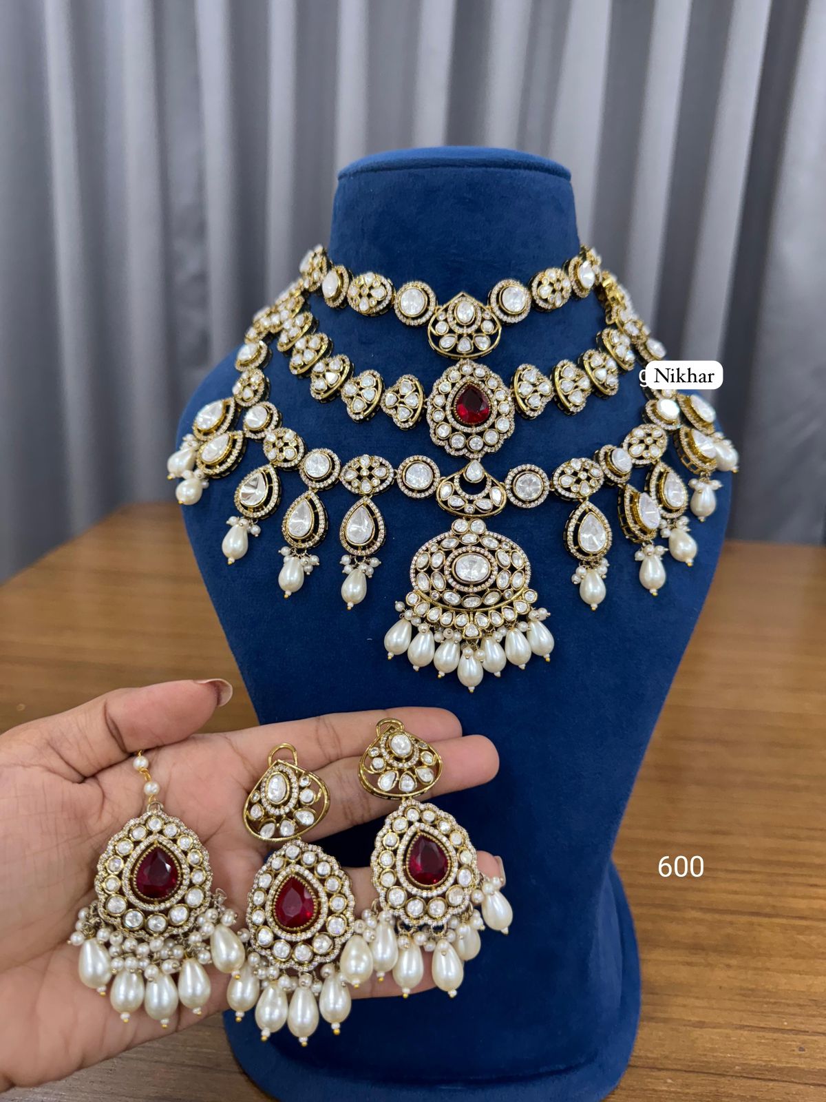 Be the first to review “Layered Ruby Pearl Moissanite Fine Quality Necklace Set with Maang Teeka and Earrings”