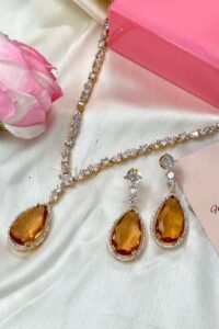 Be the first to review “Lustre Luxe Ember Gem American Diamond Necklace Set”