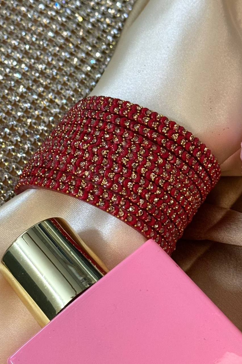 Meticulously designed, these bangles feature intricate patterns adorned with sparkling AD glass stones that reflect the radiance of real diamonds. Their enduring charm makes them the perfect companion for both grand celebrations and everyday wear—seamlessly blending tradition with modern elegance.