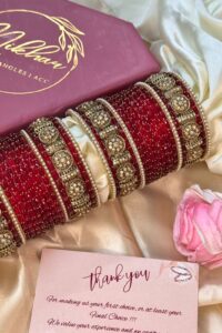Discover our premium  Bangles, crafted with high-quality gold plating that does not fade easily and offers a lasting shine. Designed with the finest craftsmanship, each piece carries a lifetime of 3–5 years of brilliance. At Nikhar, we bring to you the legacy of 40 years of trusted craftsmanship, with every piece handcrafted in our Delhi store to reflect elegance and tradition. After this period, you can simply contact us for re-polishing services to keep your bangles looking as good as new.
