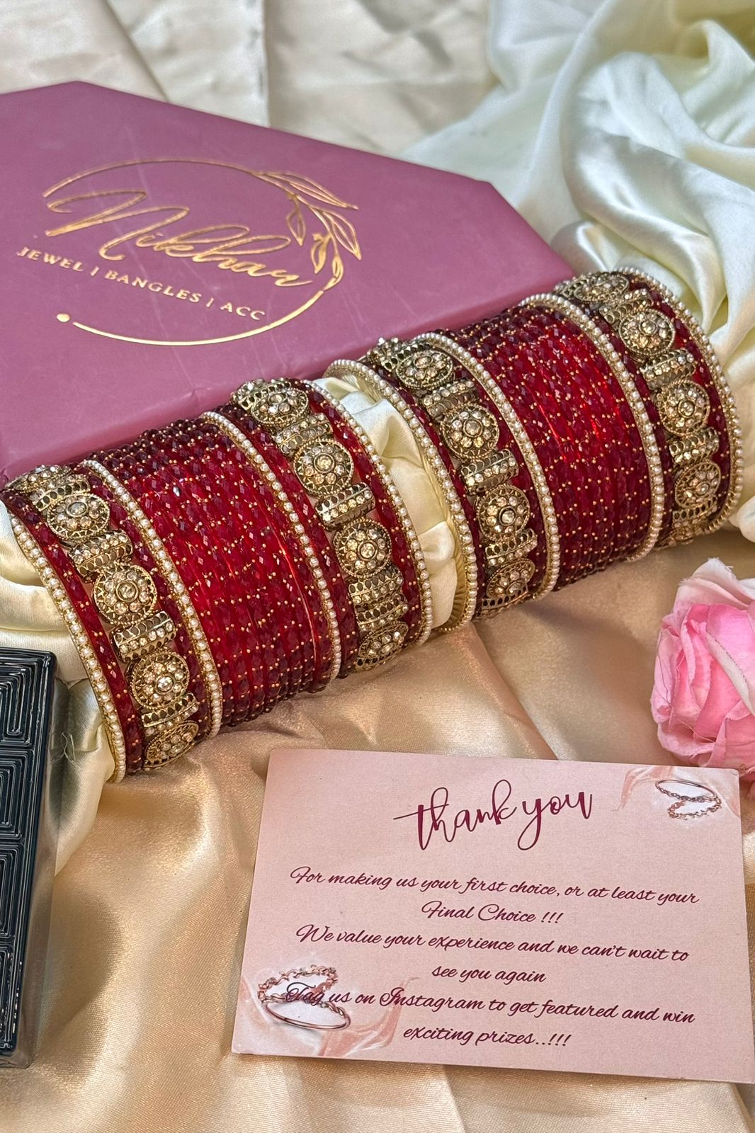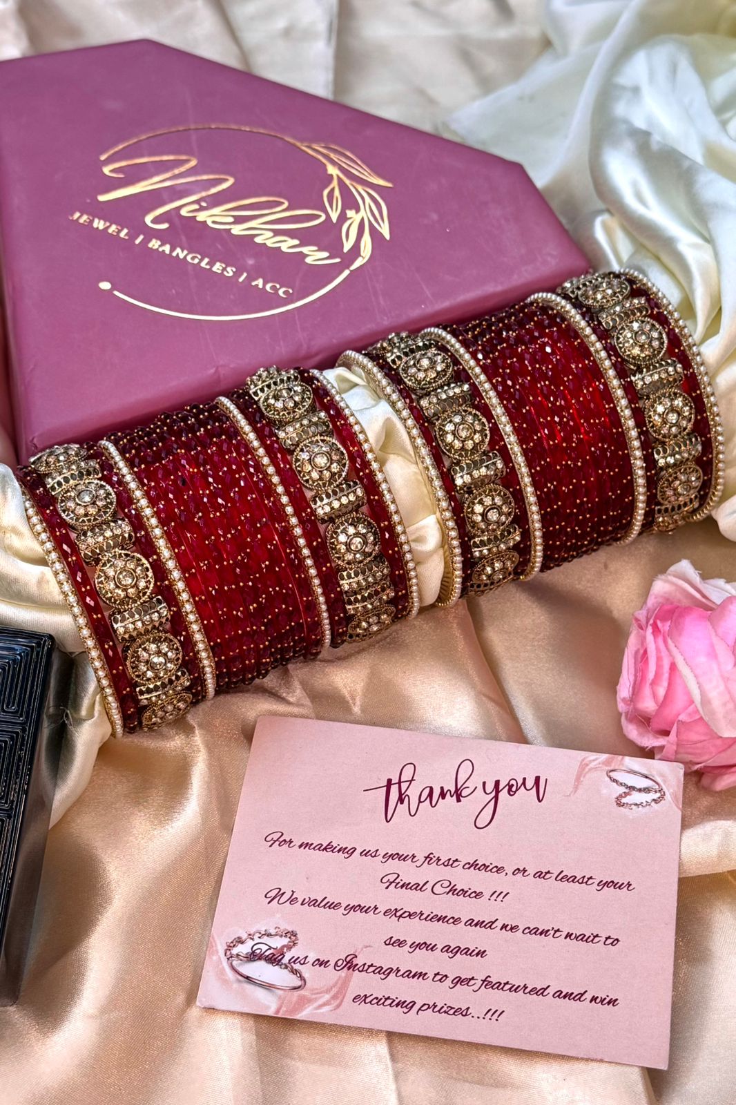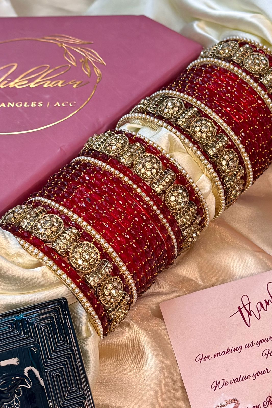 At Nikhar, our glass bangles are crafted using tough pure glass technology, making them strong, durable, and resistant to easy breakage. Each bangle is quality-tested and carefully checked before dispatch, ensuring you receive nothing short of perfection.