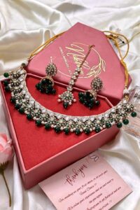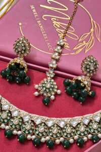 Nikhar Bangles, with a rich legacy of 36 years, presents exquisite bridal jewelry crafted from the finest Kundan Polki. Each piece is meticulously handcrafted to perfection, ensuring that every bride shines on her special day. Our designs seamlessly blend timeless tradition with contemporary trends, creating jewelry that is both elegant and modern. Nikhar Bangles stands as a symbol of heritage, luxury, and impeccable craftsmanship, making every bride’s dream come true.