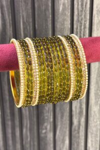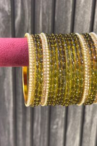 Be the first to review “Mehendi Green Raindrop Glass Bangle Set for 2 Hands”