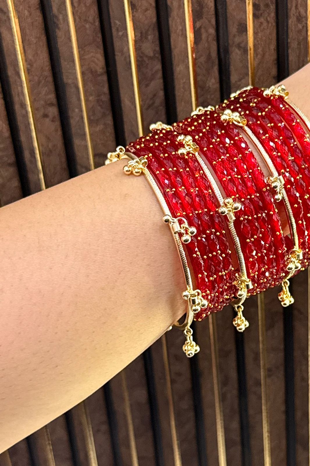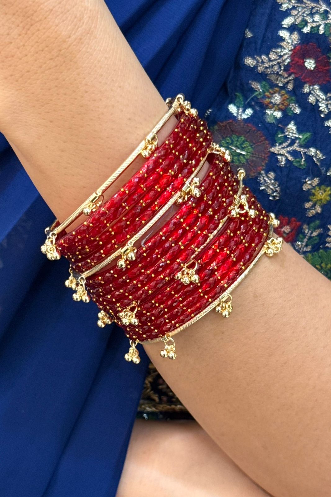 Meher Red Kashmiri Ghungroo Set of 16 Bangles