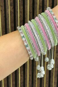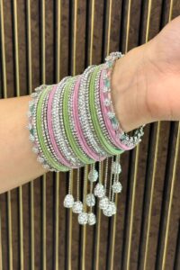 In Indian tradition, glass bangles are considered highly auspicious, symbolizing prosperity, good fortune, and the divine blessings of Goddess Lakshmi. Wearing them daily is believed to attract positivity, enhance feminine grace, and invite abundance into life. On weddings, festivals, and special occasions, they hold even deeper significance—representing joy, harmony, and the eternal bond of tradition.