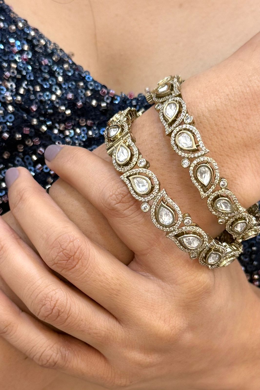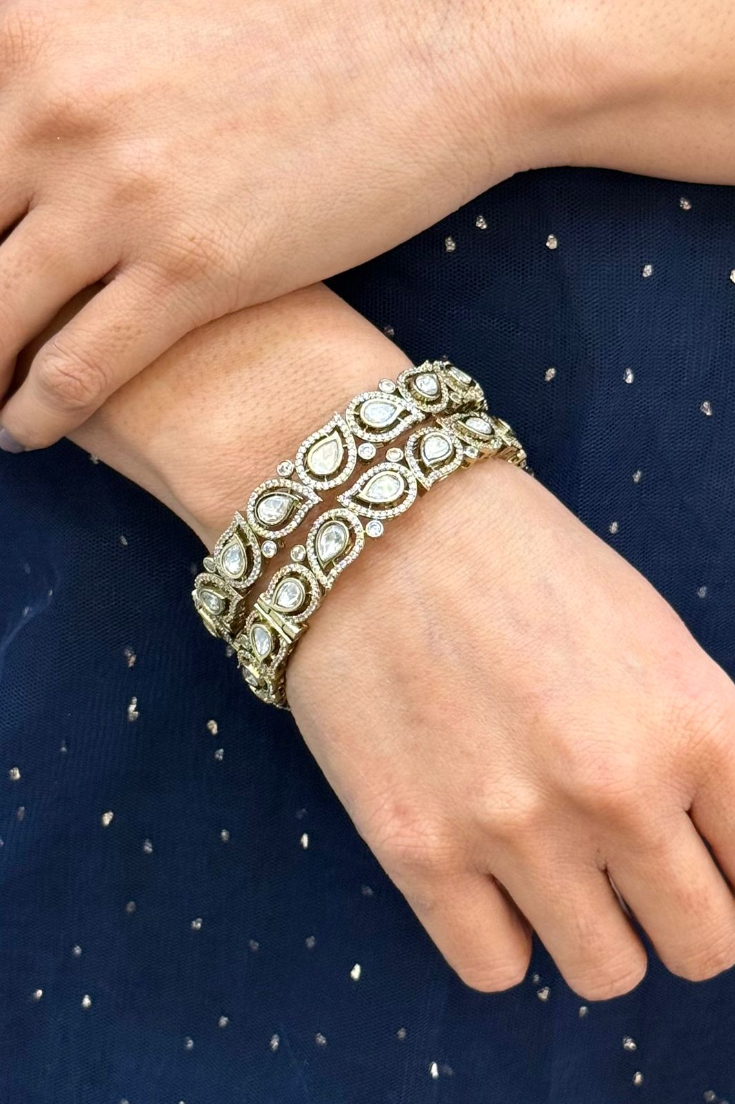Moissanite Leaf Uncut Diamond Antique Polish Bangles Set of 2(Openable)