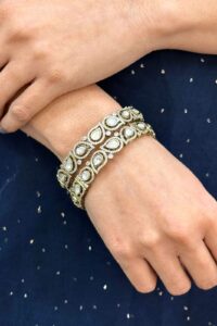 Be the first to review “Moissanite Leaf Uncut Diamond Antique Polish Bangles Set of 2(Openable)”