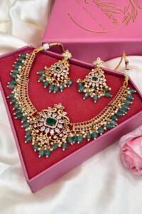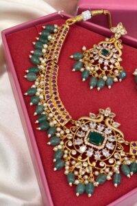Be the first to review “Moissanite Premium Luxuria Ruby Embrace Gold Polish Necklace Set”