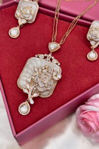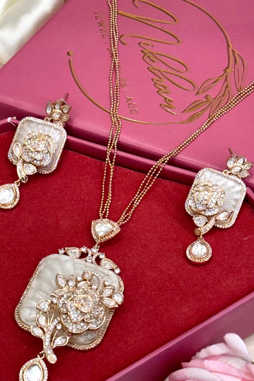 Mother Of Pearls Moissanite AD Flower Gold Polish Pendant Set