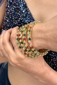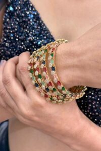 Be the first to review “Multi Stones American Diamond Gold Bangles Set Of 4”