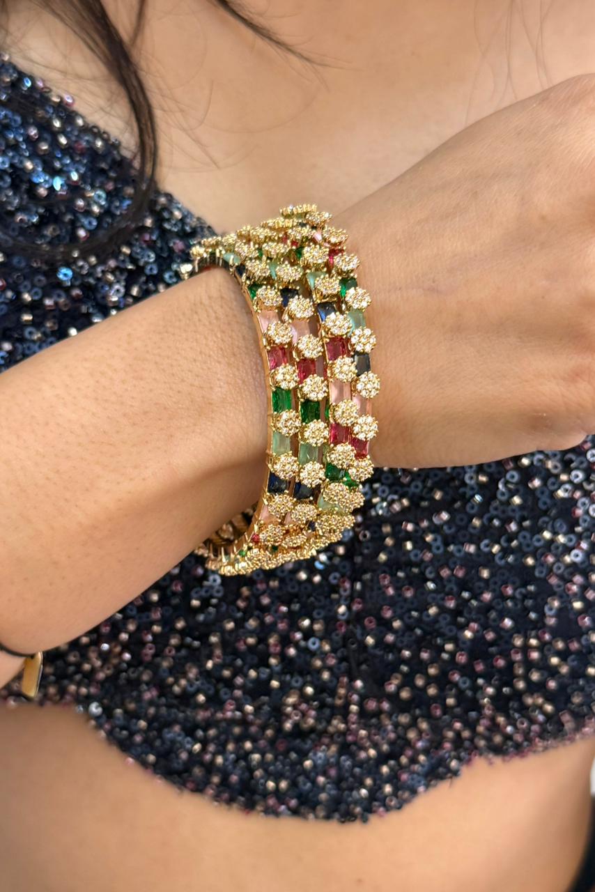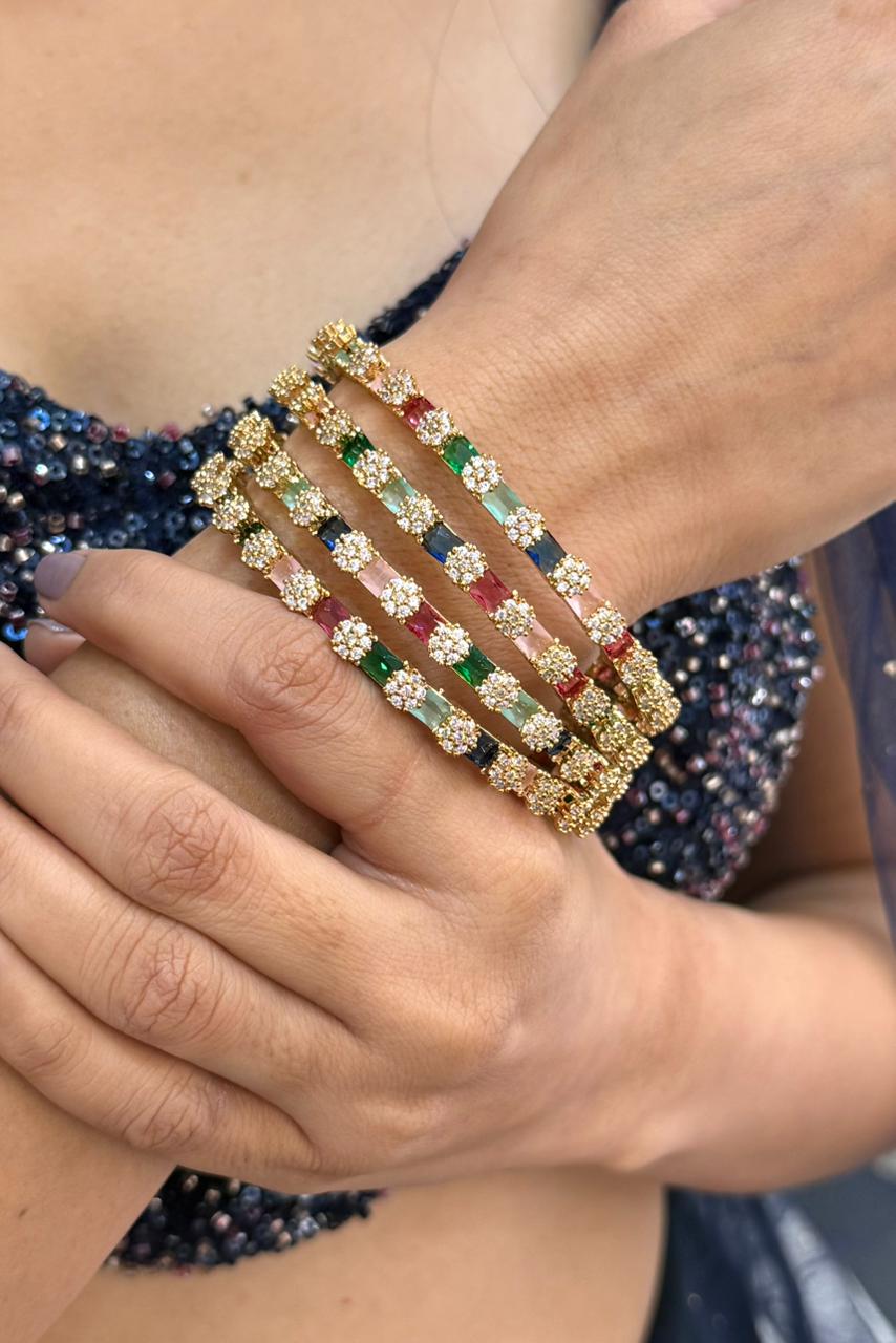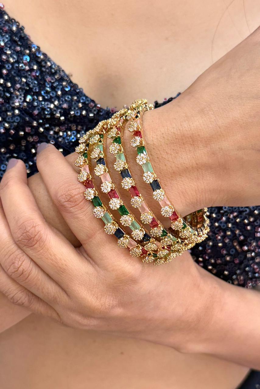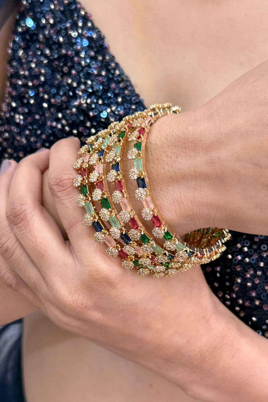 Multi Stones American Diamond Gold Bangles Set Of 4