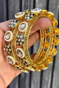 Experience the highest quality handcrafted gold polish bangles — a perfect blend of tradition, elegance, and emotion. Designed for your most special occasions, each set holds the sentiments and cultural beauty cherished by generations, lovingly crafted by our all-women team of skilled artisans. With clean craftsmanship and flawless attention to detail, we honour the emotional connection that comes with ritual and festive adornments.