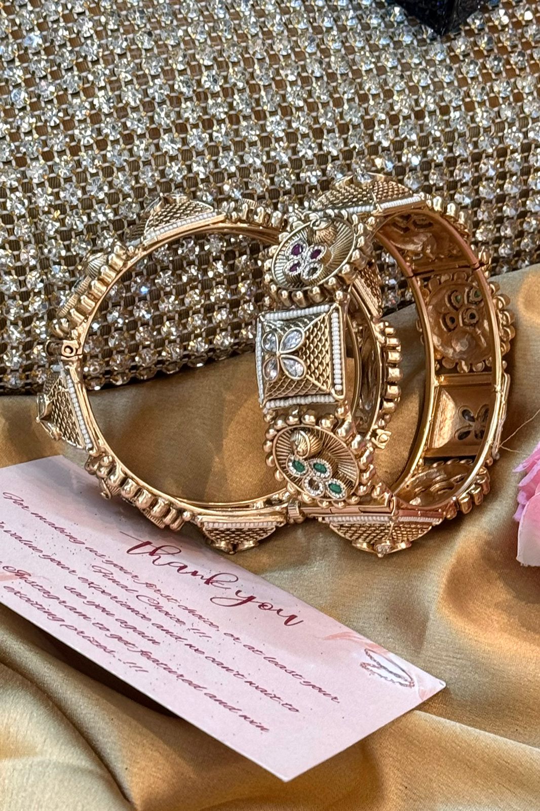 Nazaakat Jewel Glow Dull Gold Bangles Set of 2 (Openable)