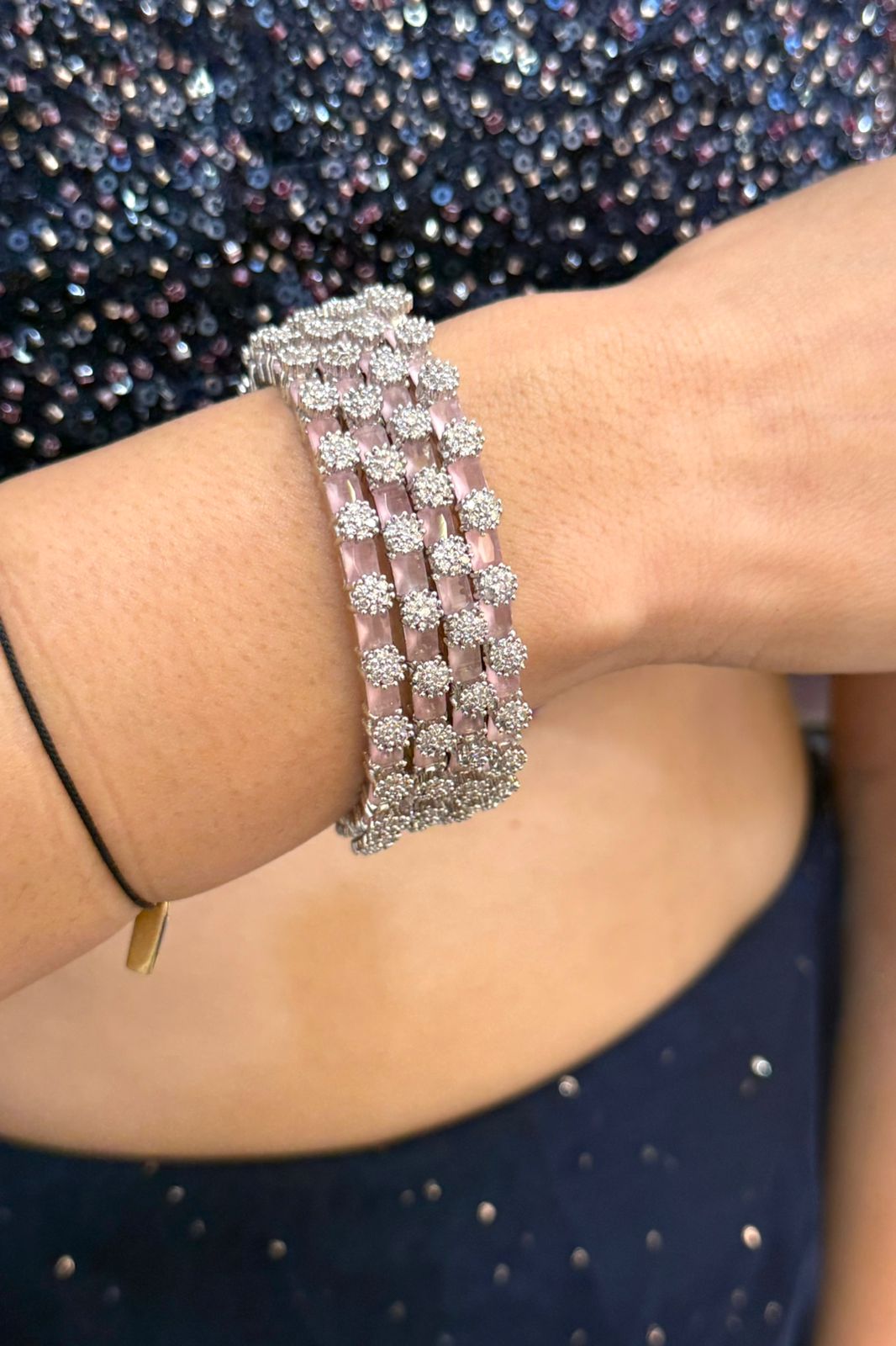 New Camellia Pink American Diamond Silver Bangles Set of 4